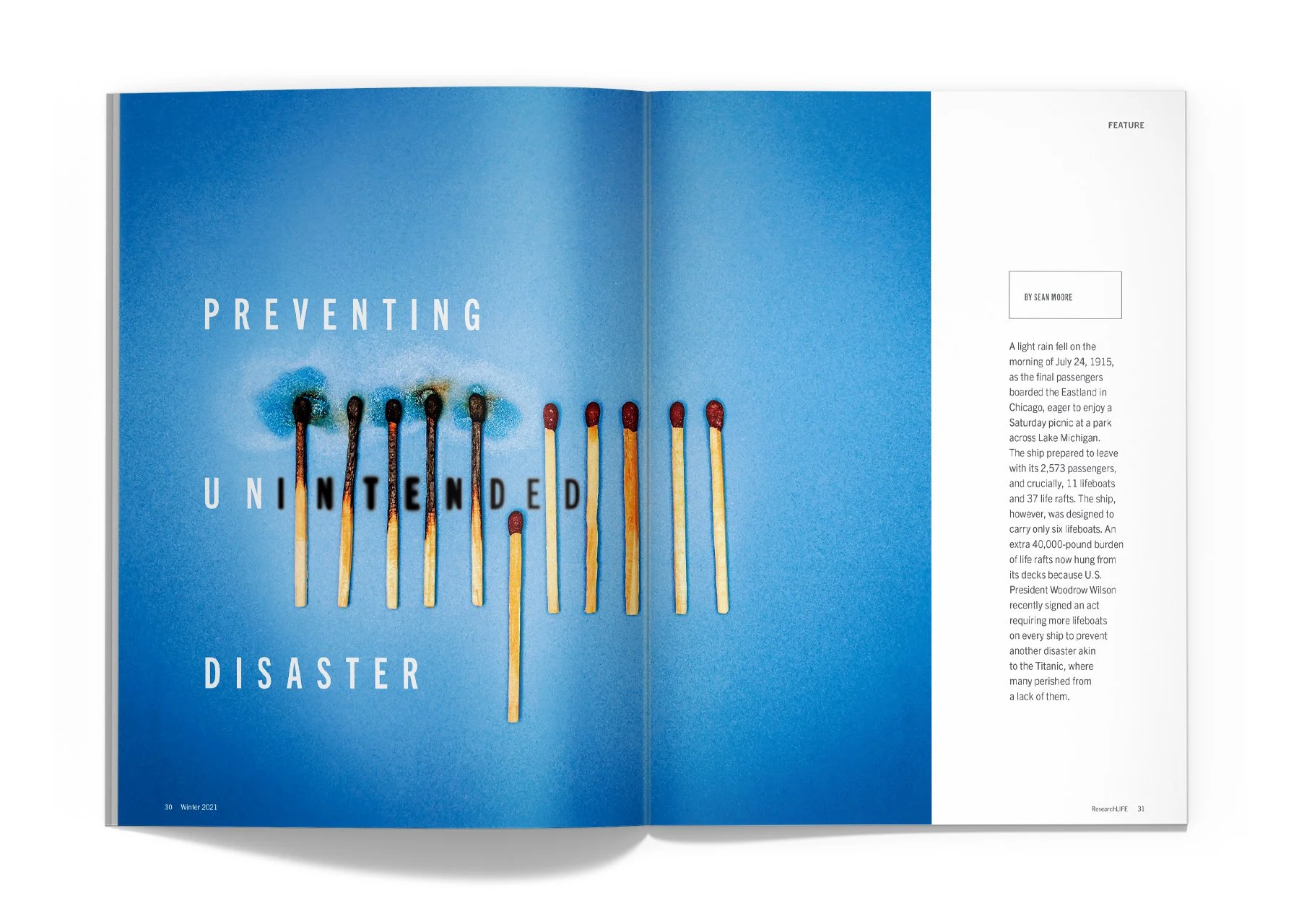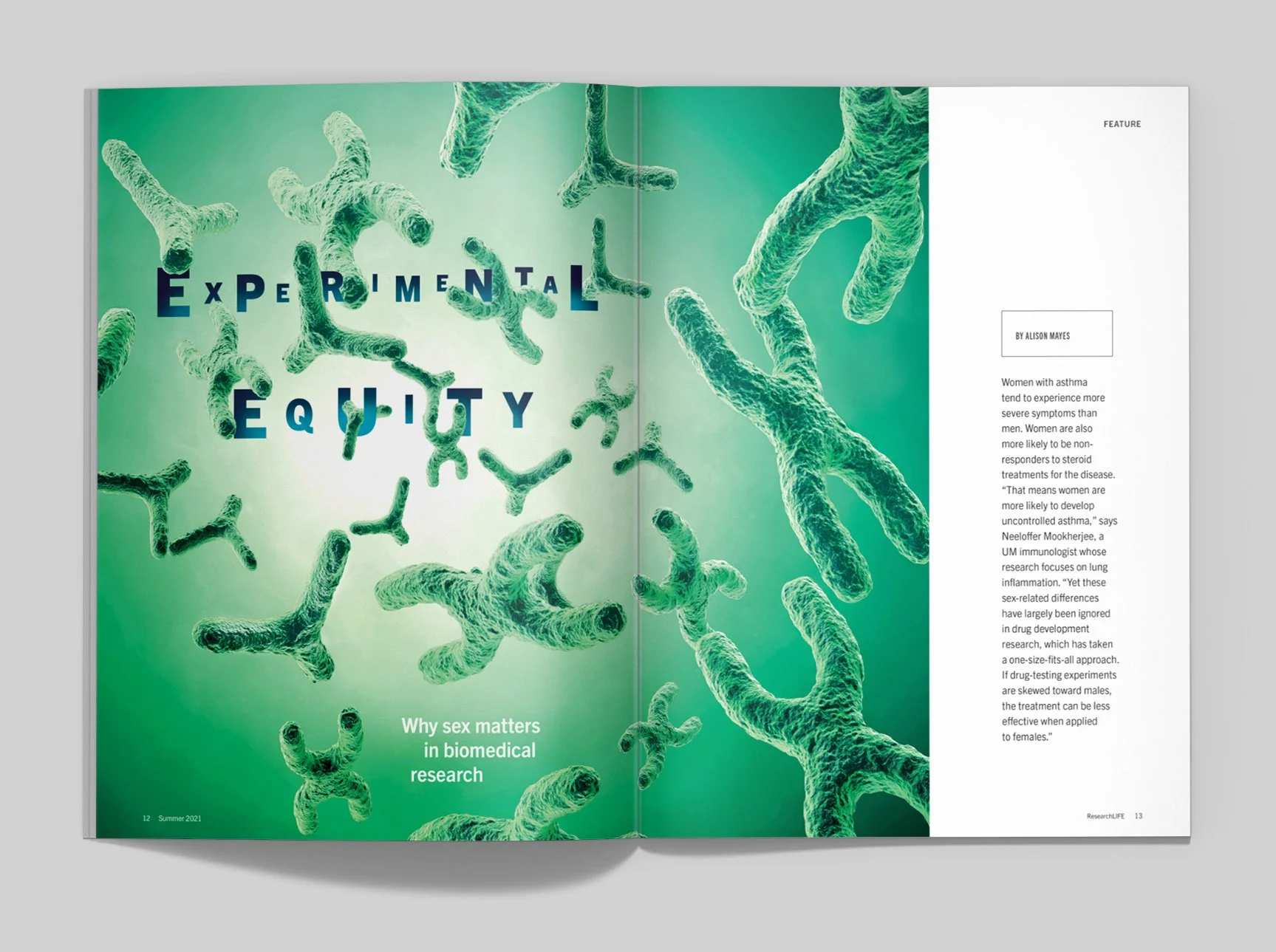 To improve clarity and visual appeal, a flexible grid structure was developed to showcase the depth of content from small articles to feature stories, and provide visual consistency throughout the magazine. The covers were redesigned with large full-bleed, research-oriented imagery to make an impact and resonate with its audiences. The result is a clean, creative and contemporary tone with ample white space. ResearchLIFE has realized its goal of publishing a well-regarded scientific magazine, which has in turn increased respect and credibility for the U of M research community.